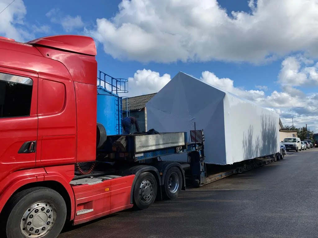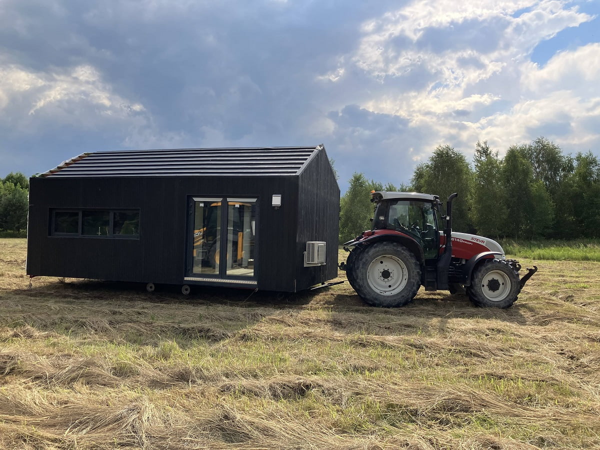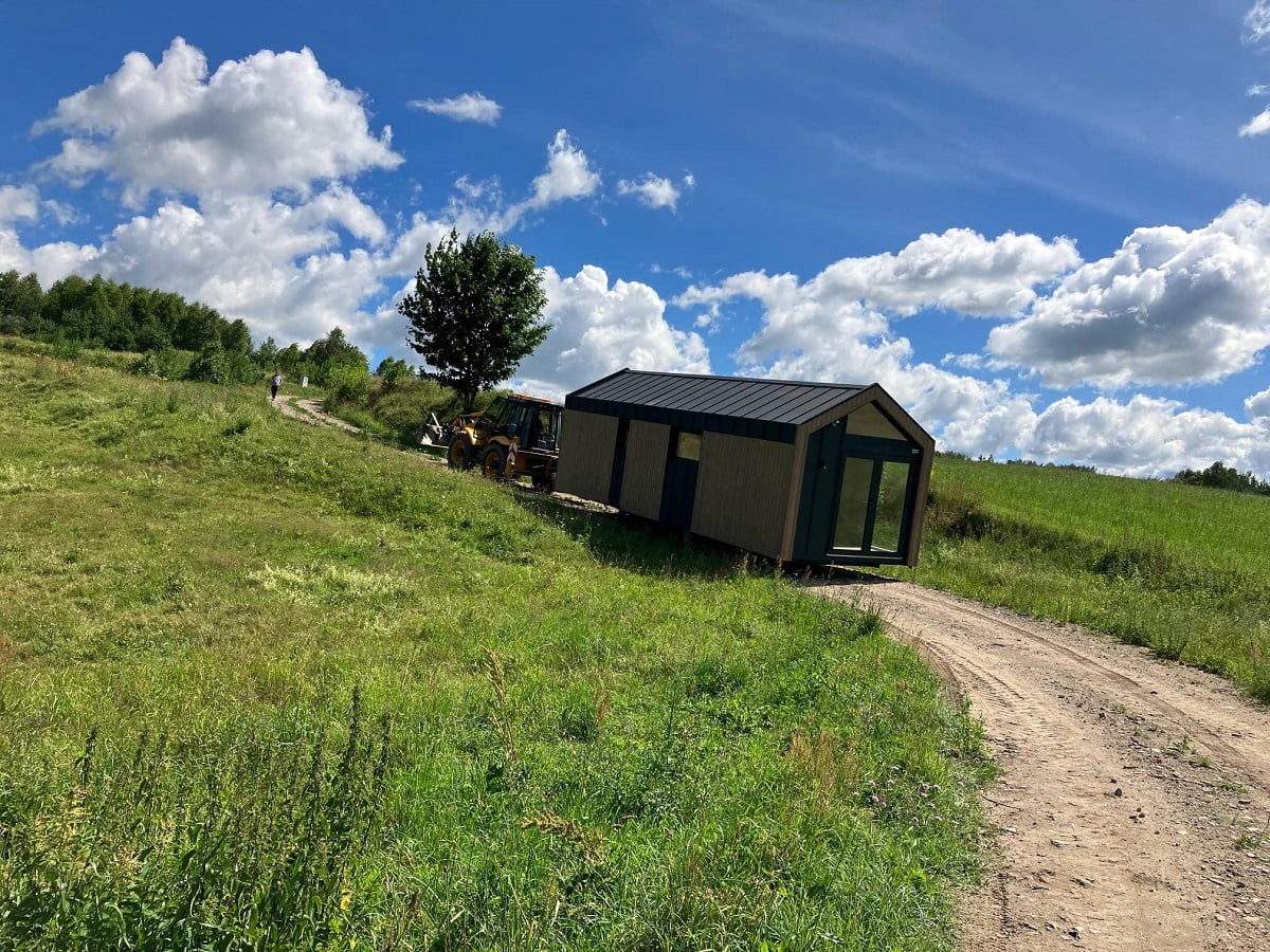 Gotowy dom transportowany jest na miejsce specjalistycznym - niskopodłogowym, transportem drogowym. Koszt transportu nie jest wliczony w cenę domu, jego wartość zależy od docelowej lokalizacji oraz szerokości domu.